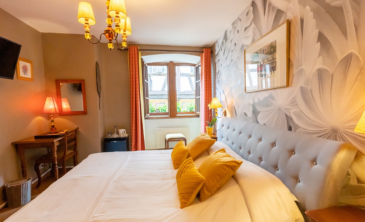 Nous vous proposons ici quelques photos de notre hôtel, de ses chambres, son bar et son salon, ainsi que de la ville de Riquewihr en Alsace, magnifique cité médiévale avec ses fortifications et ses maisons à colombages, et qui fait partie des perles du vignoble alsacien.